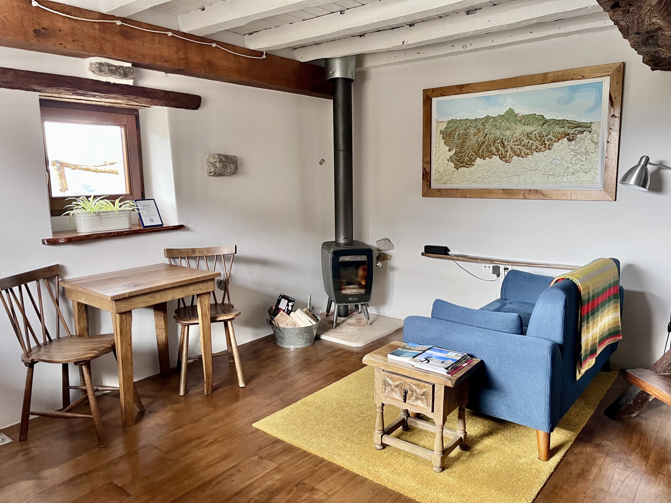 Brimming with character, this charming hideaway combines traditional features with simple, modern comforts. Original wood beams, a cozy wood-burning stove, and a spacious super king bed create a warm and restful retreat. Fully equipped for self-catering, it’s ideal for couples or solo travellers. The shared terrace offers stunning views of the western Picos de Europa and unforgettable sunsets overt the Sierra del Sueve.